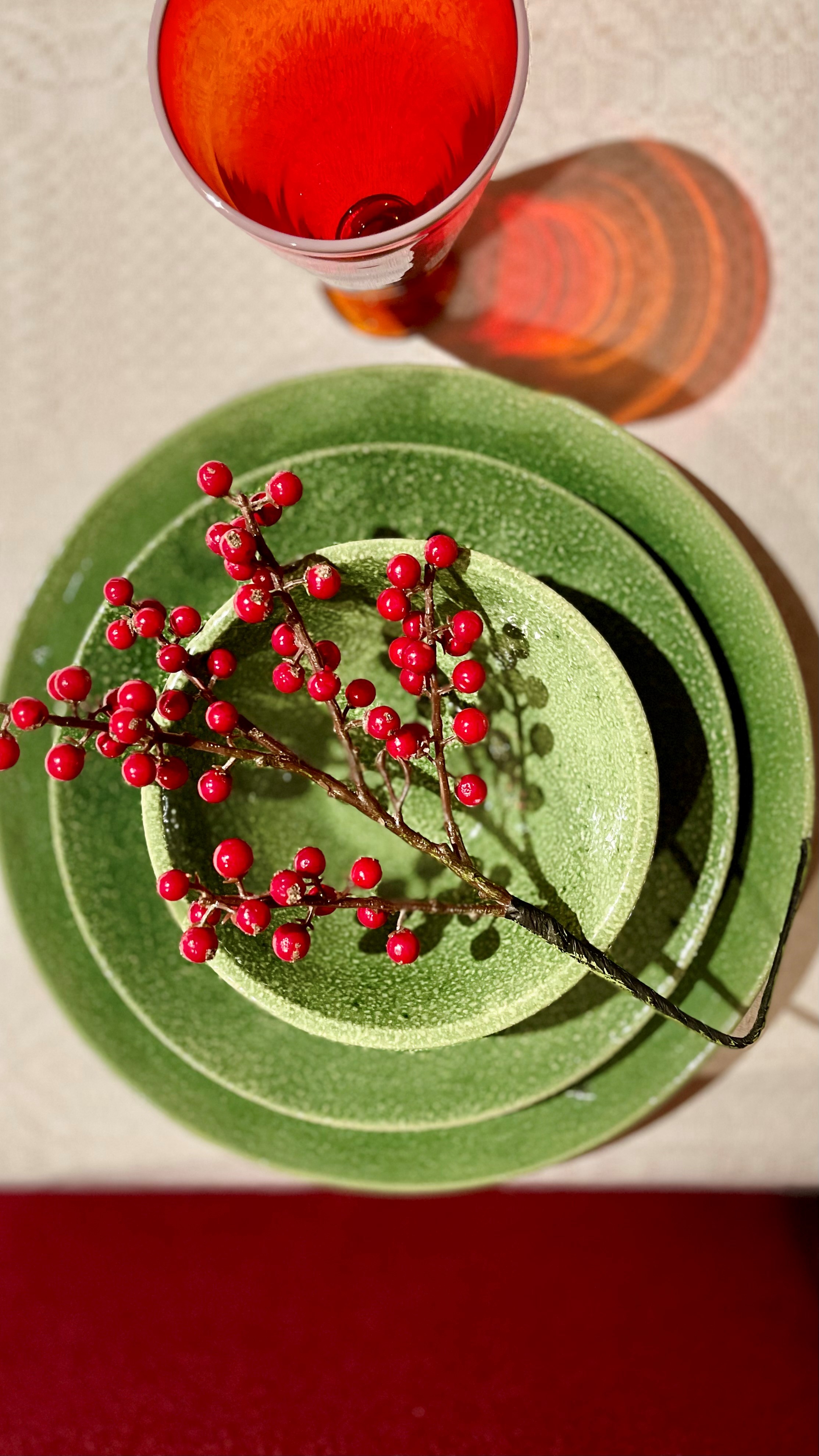 Det finns inga måsten vad gäller juldukning men säsongen lockar många av oss mot det varmt julröda och det krispigt vintervita, möjligen accentuerat med detaljer av silver och guld. Det klassiskt röda som julens färg är egentligen en anspelning på Kristi blod och den röda tomten etablerades i och med en gammal illustration i en reklamkampanj för Coca Cola. Ytterligheter, minst sagt. I den anglosaxiska visan “Deck the Halls with bows of Holly” beskrivs hur man dekorerar inför jul med järnek och även det är en kristen tradition. Järneken med sina taggiga blad är grön året om och symboliserar det eviga livet. Med tanke på det så passar en grön dukning som handen i handsken på julbordet. Den gröna färgen är dessutom komplementfärg till rött i färgcirkeln, så de får varandra att poppa och framträda på bästa sätt. I vår avdelning för tallrikar hittar du både middagstallrikar och assietter i grönt, delar som du med lätthet kan använda året om och kombinera med mönster och färger som du redan har hemma och kan variera under säsongernas gång. Dekorera tallrikarna med blommor, bärkvistar eller julgranskulor och vips har du skapat en oförglömlig dukning som får gästerna att tappa hakan och maten att framträda extra frestande.
