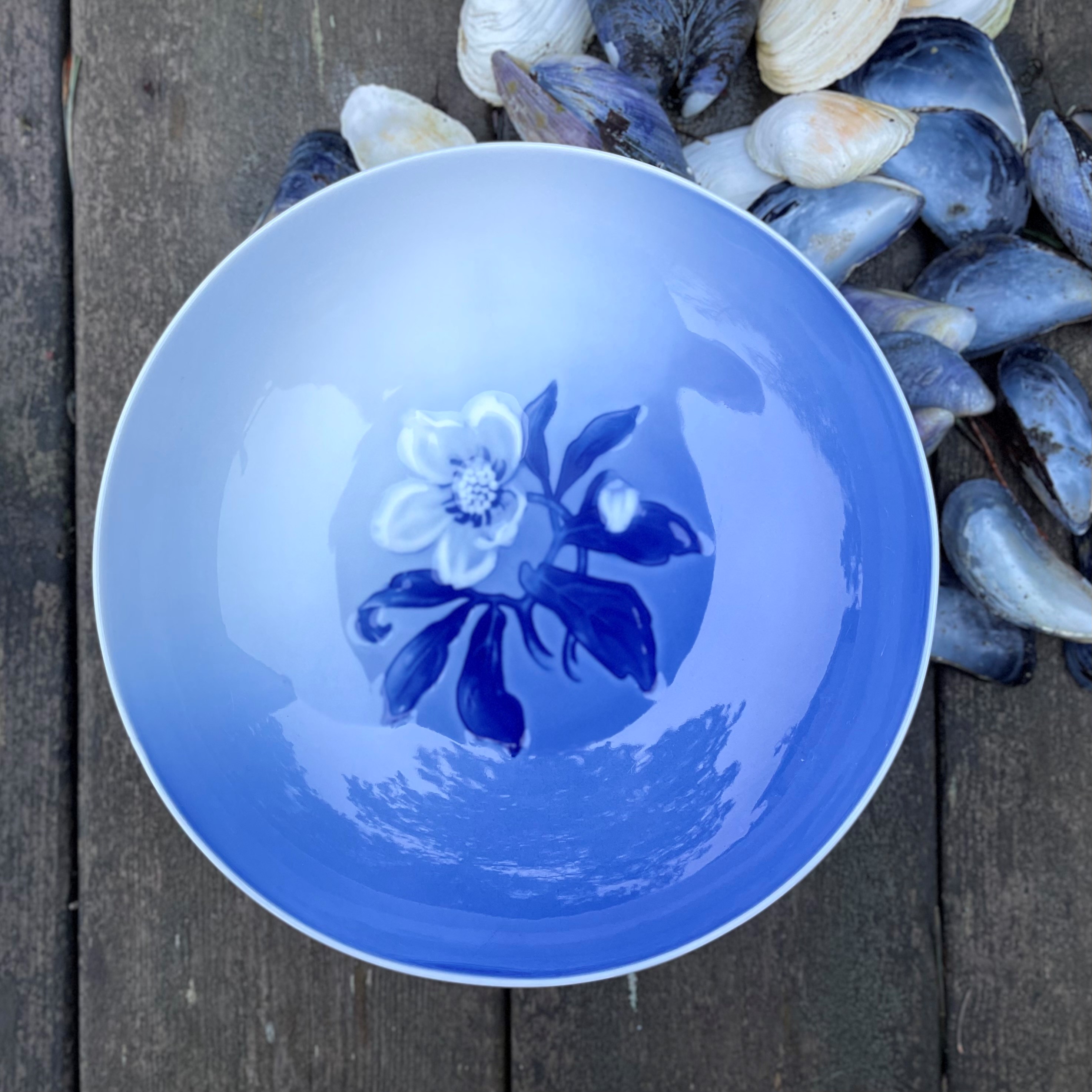 Det finns många porslinstillverkare som designat vackra julserviser som kan plockas fram under julen och som bidrar till att skapa magi år efter år. Royal Copenhagen, Fyrklövern, Rörstrand, Gustavsberg, IIttala och Villeroy & Boch är bara några. Girlanger, hjärtan, leksaker, pepparkakor, tomtar och polklagrisar samsas med gnistrande detaljer i guld och silver. Serveringsskålen på bilden nedan kommer från klassiska Bing & Grøndal ur deras serie ”Julrosen”, designad 1936 av Louise Cecilie Hallin. Det finns just nu ett exemplar av den här fantastiska skålen i vår vintageavdelning. Det som är spännande med den här designen är att den passar att duka med året om, julrosen med sin klassiska blomform kan med lätthet dukas fram både till påskmiddagen, midsommarfesten och kräftpremiären.