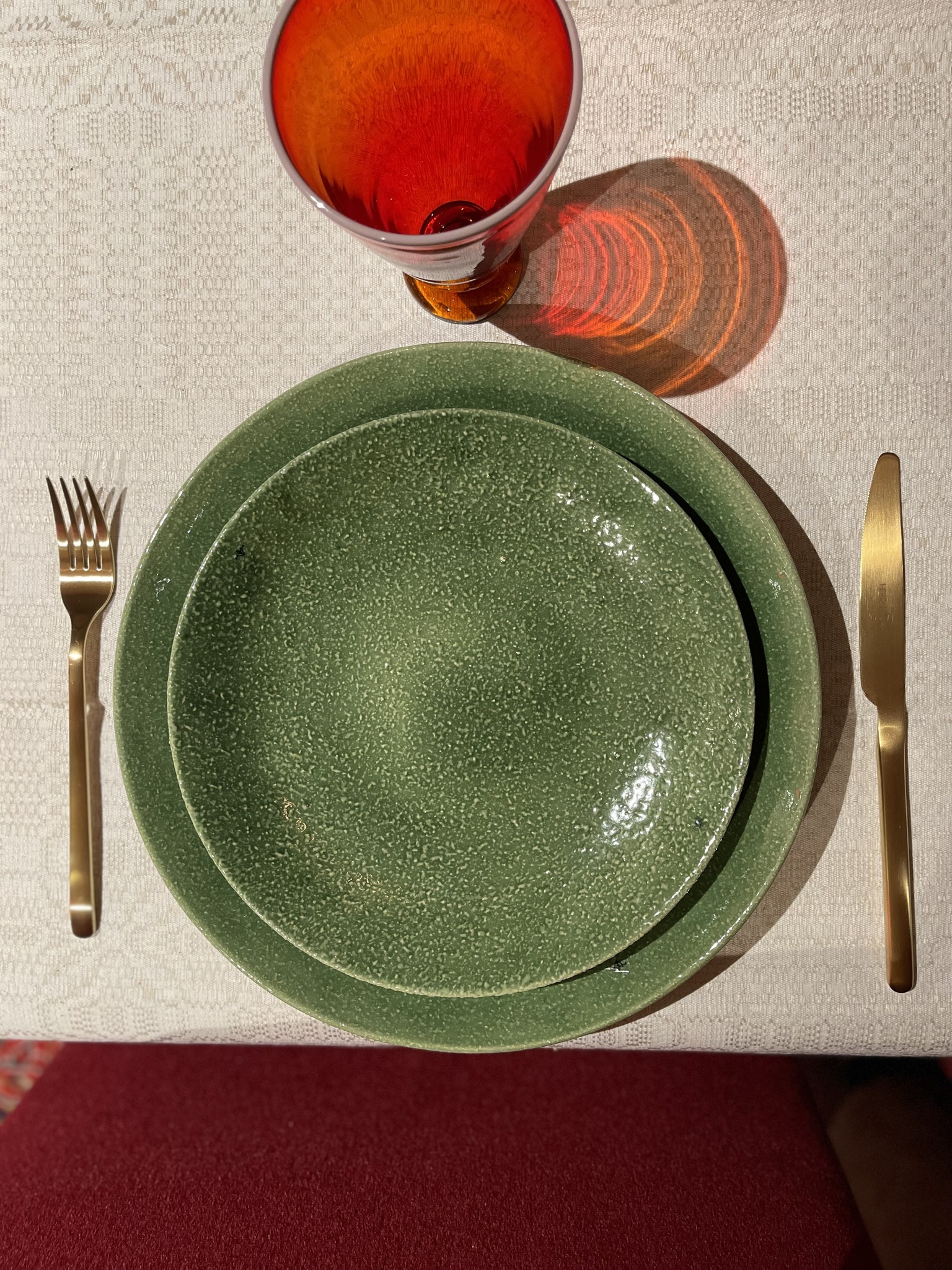 Skapa en ny slags julservis! Assiett av stengods glaserad i en läckert lyxig grön färg med naturliga variationer som ger en rustik känsla. Matcha med skål och middagstallrik i samma serie eller kombin