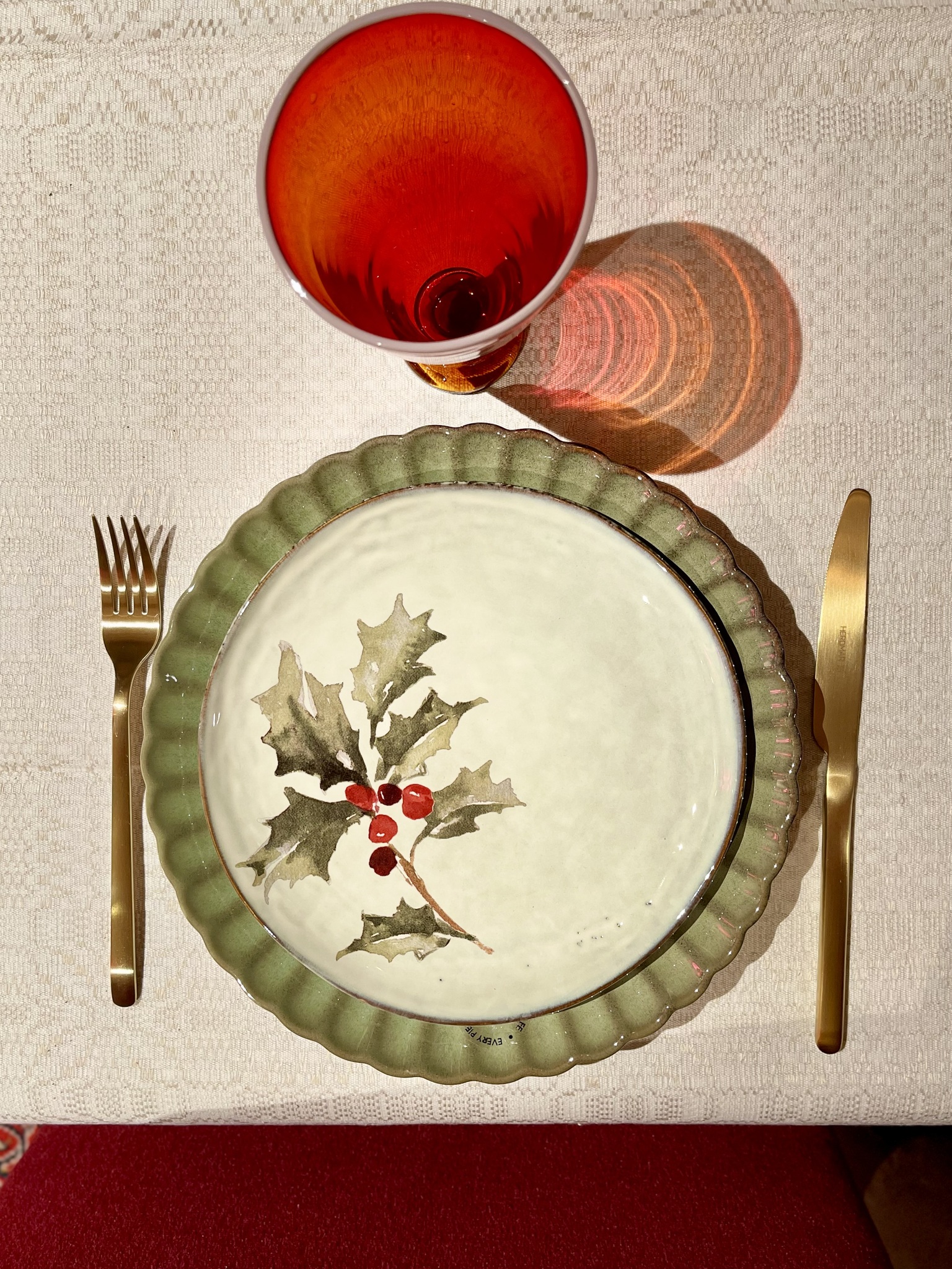 Rustik och gedigen assiett med mönster med järnek. Assietten är en aning oregelbunden och den ena är inte den andra lik vilket adderar en extra dimension till din dukning. Tål maskindisk och micro. Di