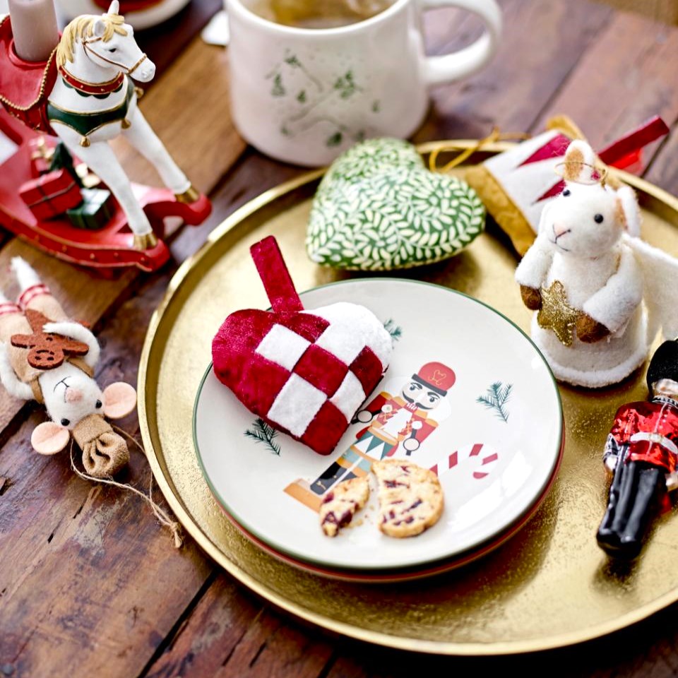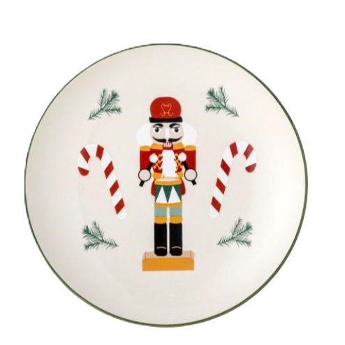 En assiett i lite mindre storlek av stengods, dekorerad med polkagrisar och en ståtlig nötknäpparsoldat. Matcha med muggen och skålen i samma serie. Tål diskmaskin och micro. Diameter 16 cm.