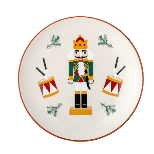 En assiett i lite mindre storlek av stengods, dekorerad med trummor och en ståtlig nötknäpparsoldat. Matcha med muggen och skålen i samma serie. Tål diskmaskin och micro. Diameter 16 cm.