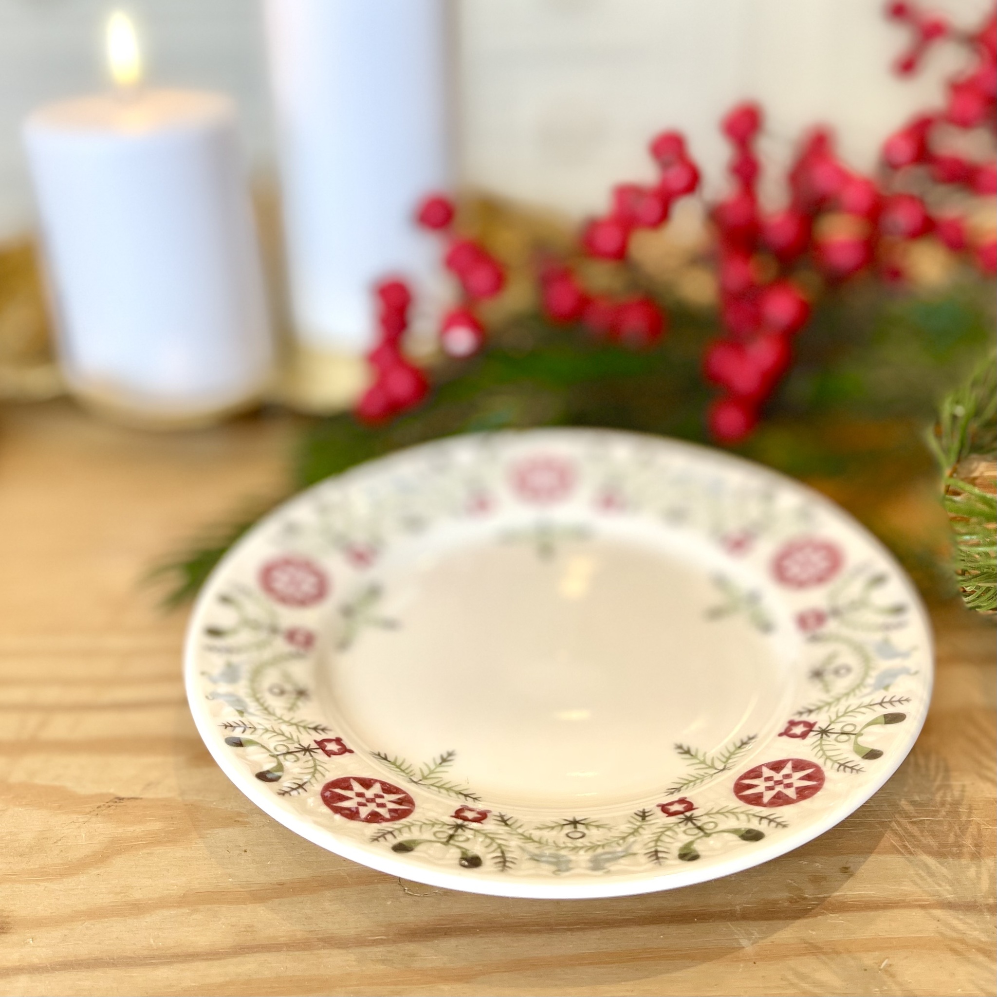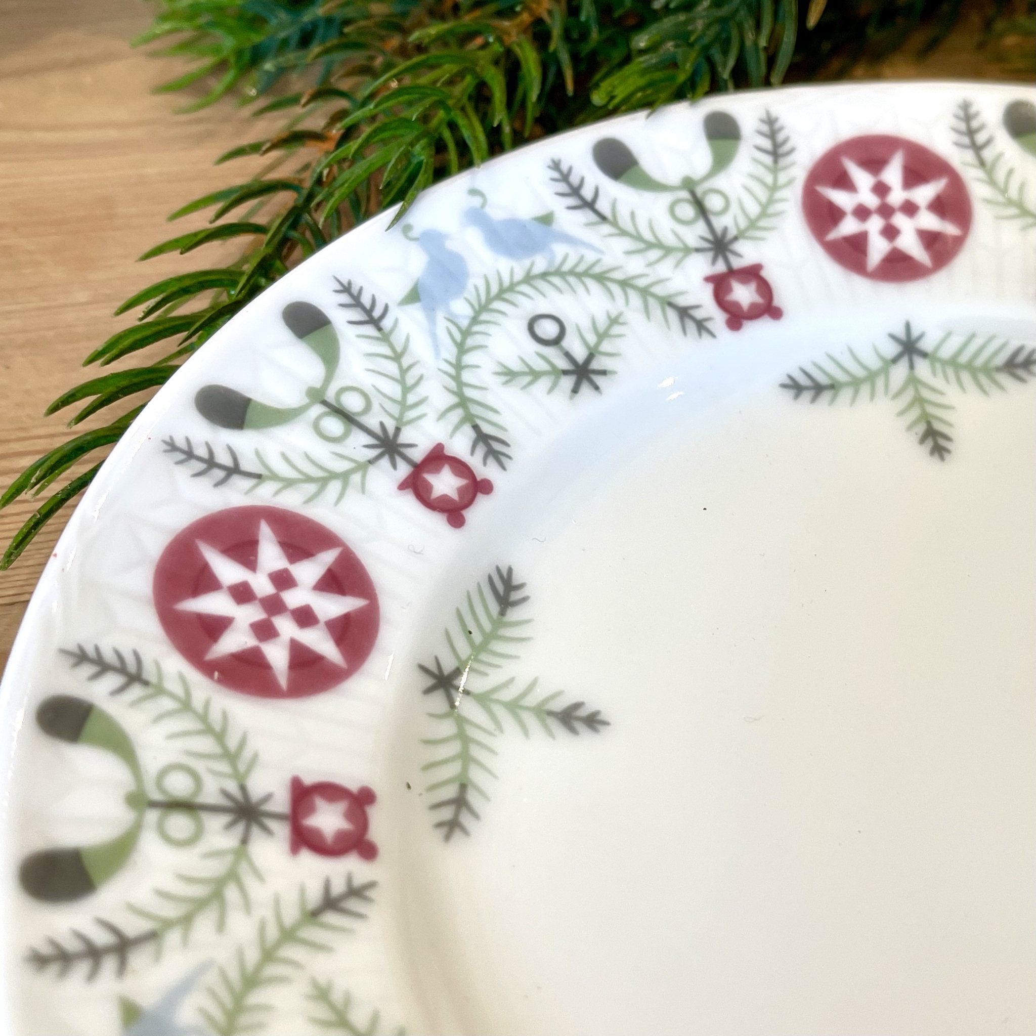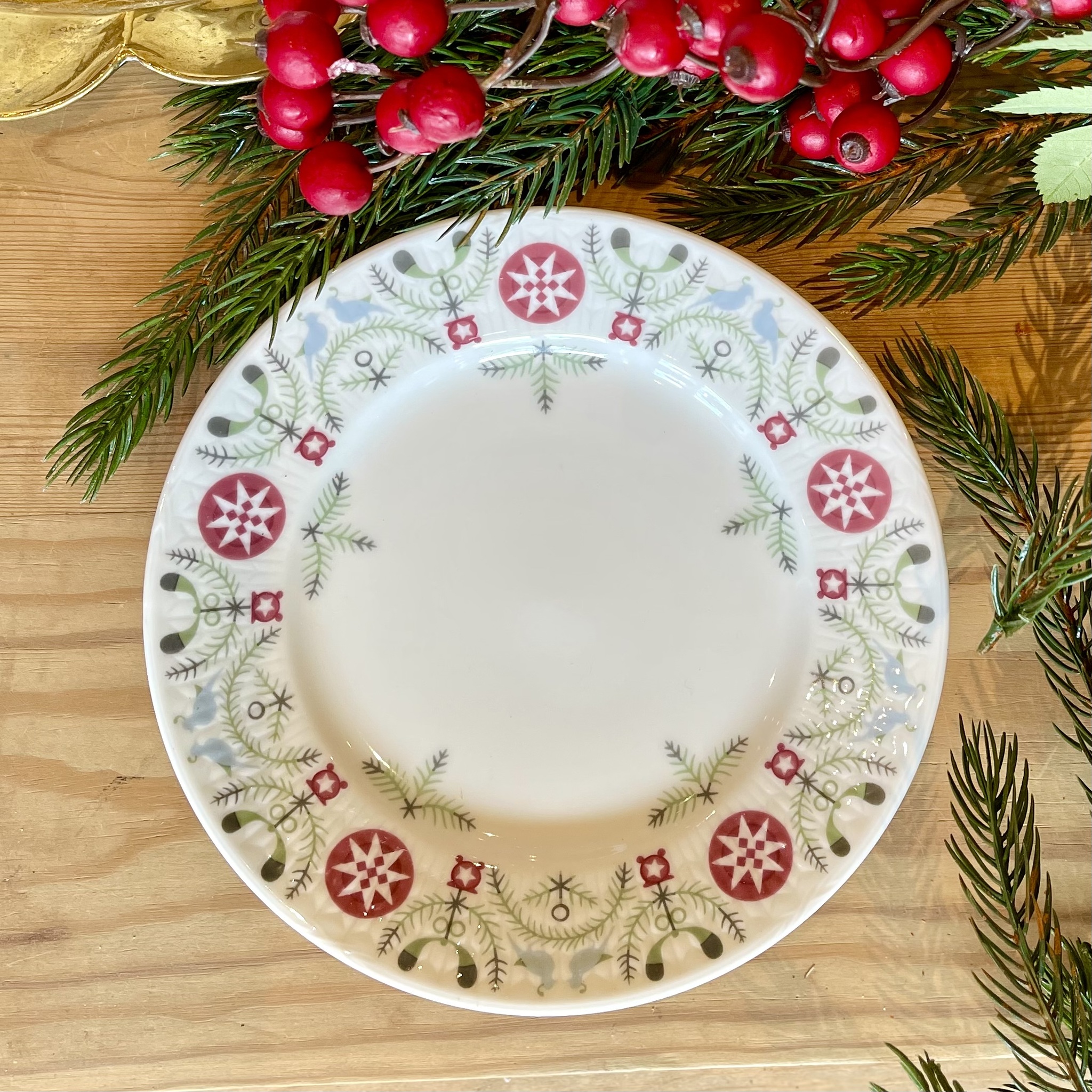 Den klassiska designen Swedish Grace från Rörstrand, här i vinterskrud under namnet ?Winter? dekorerad med grafiskt vintermönster. Diameter 17 cm. Tål frys, micro och diskmaskin.