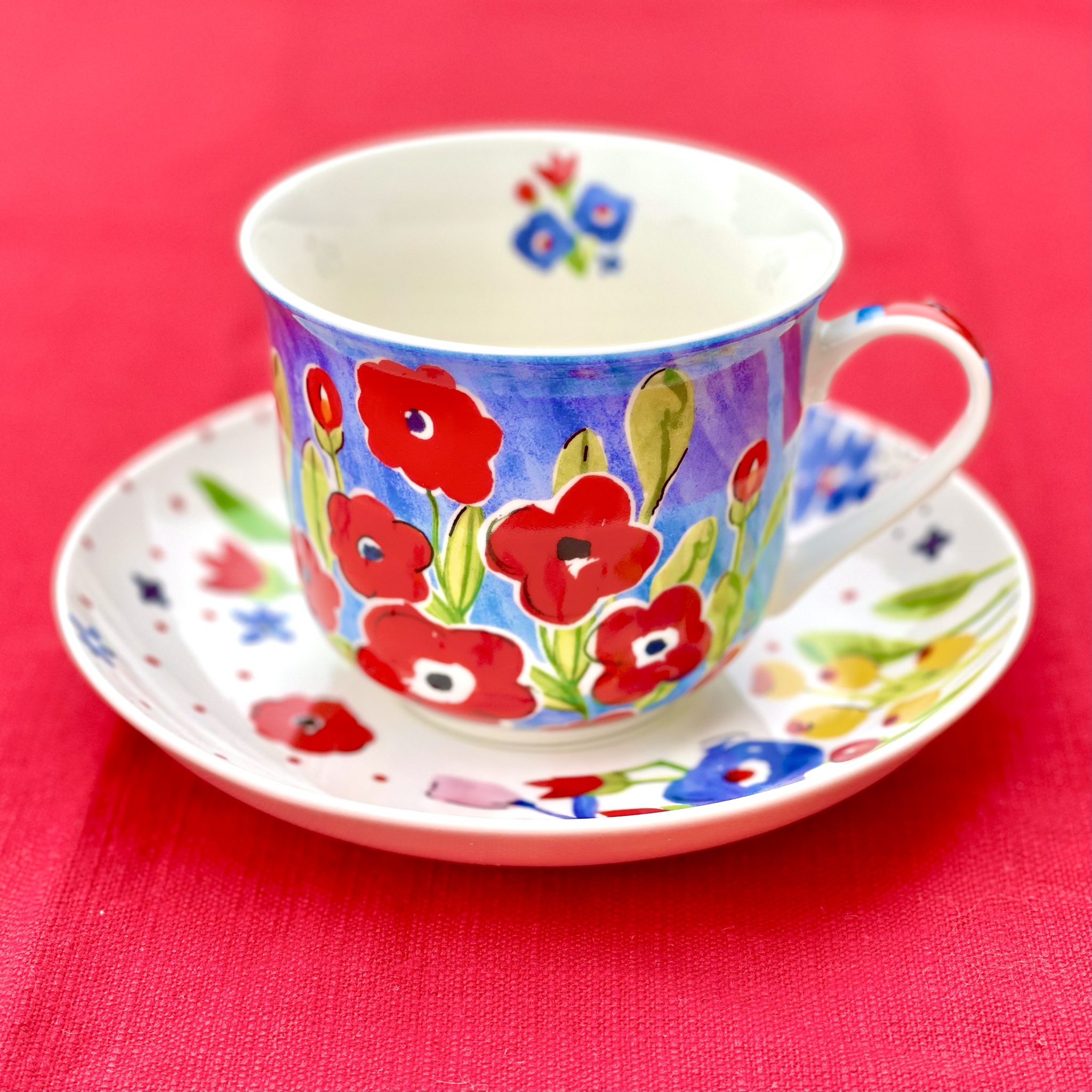 Slå ut i blom hela du med denna ljuvliga tekopp! Kopp och fat i porslin. Tål maskindisk och micro. Rymmer 400 ml.
