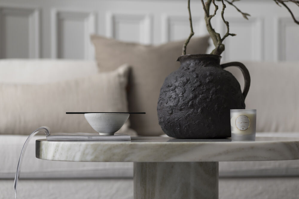 Victorian Sense Roundbox ?Fresh Cotton?. En elegant grå ljuskopp i frostat glas med en doft av nytvättad bomull. Brinntid 30 timmar. Lämna aldrig ett brinnande ljus obevakat. Håll borta från barn och