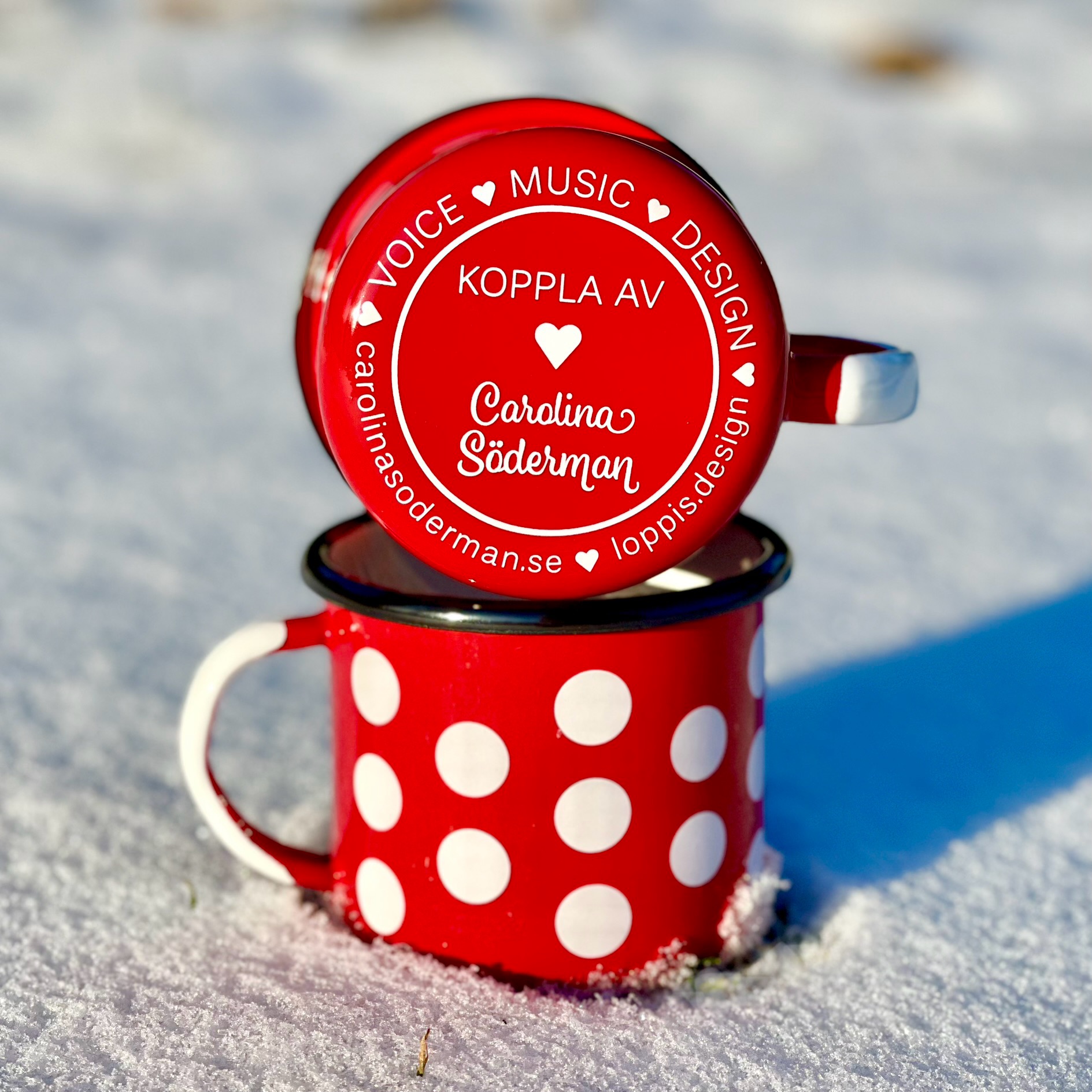 Prickig emaljkopp designad av Carolina Söderman med en uppmaning undertill att ?Koppla av?. Koppen är av högsta kvalitet och består av emaljerad metall. Varje kopp är tillverkad för hand och det kan f