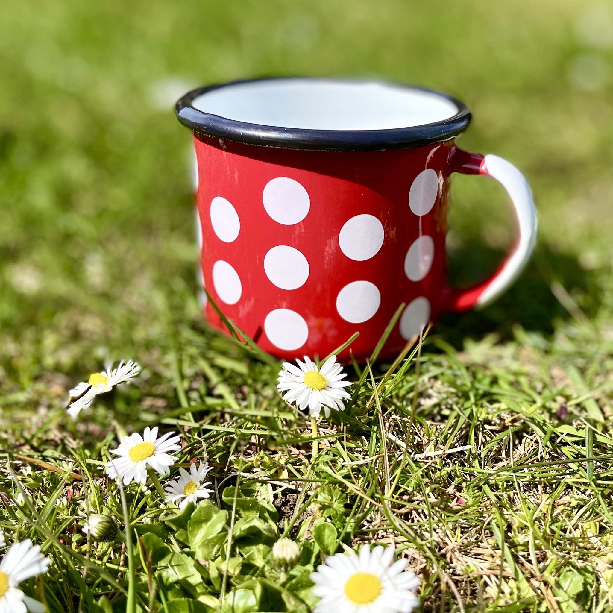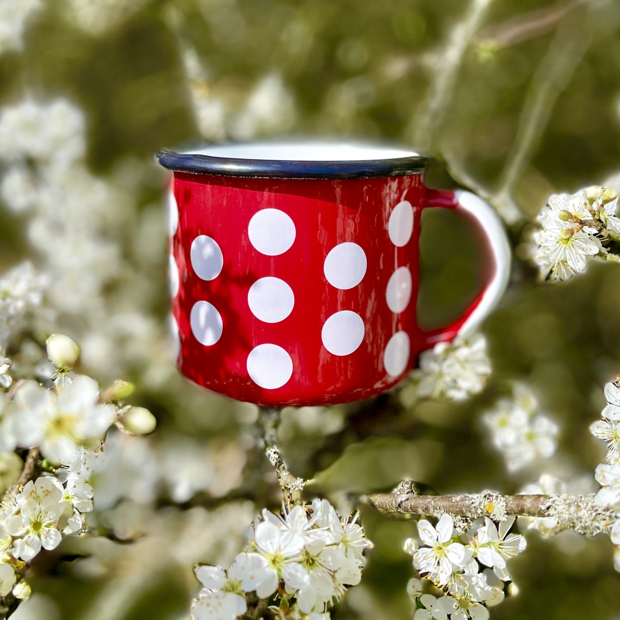 Prickig emaljkopp designad av Carolina Söderman med en uppmaning undertill att ?Koppla av?. Koppen är av högsta kvalitet och består av emaljerad metall. Varje kopp är tillverkad för hand och det kan förekomma oregelbundenheter. Priset är för en kopp. Skötselråd: Handdisk, bör torkas noggrant direkt efter diskning. Bör ej utsättas för vassa föremål då ytskiktet kan få repor. Tål ej micro. Rymmer 350 ml, höjd 7,5 cm, bredd 9 cm.