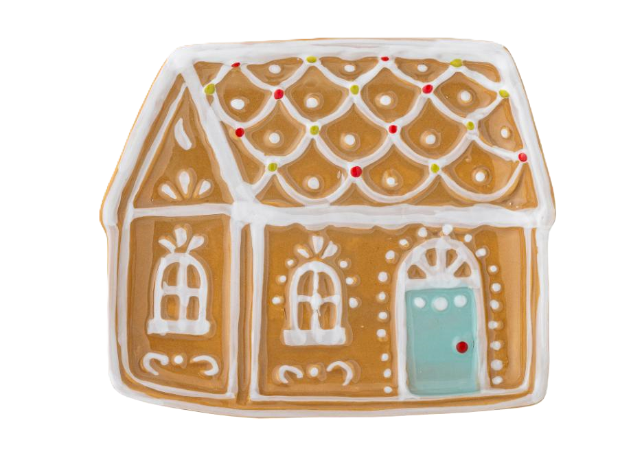 Ett handmålat fat i form av ett pepparkakshus kan väl knappast passa bättre i juletid? Ett fat att vårda i många år framöver. Tål diskmaskin men ej micro. Längd 15 cm, bredd 14 cm, höjd 2 cm.