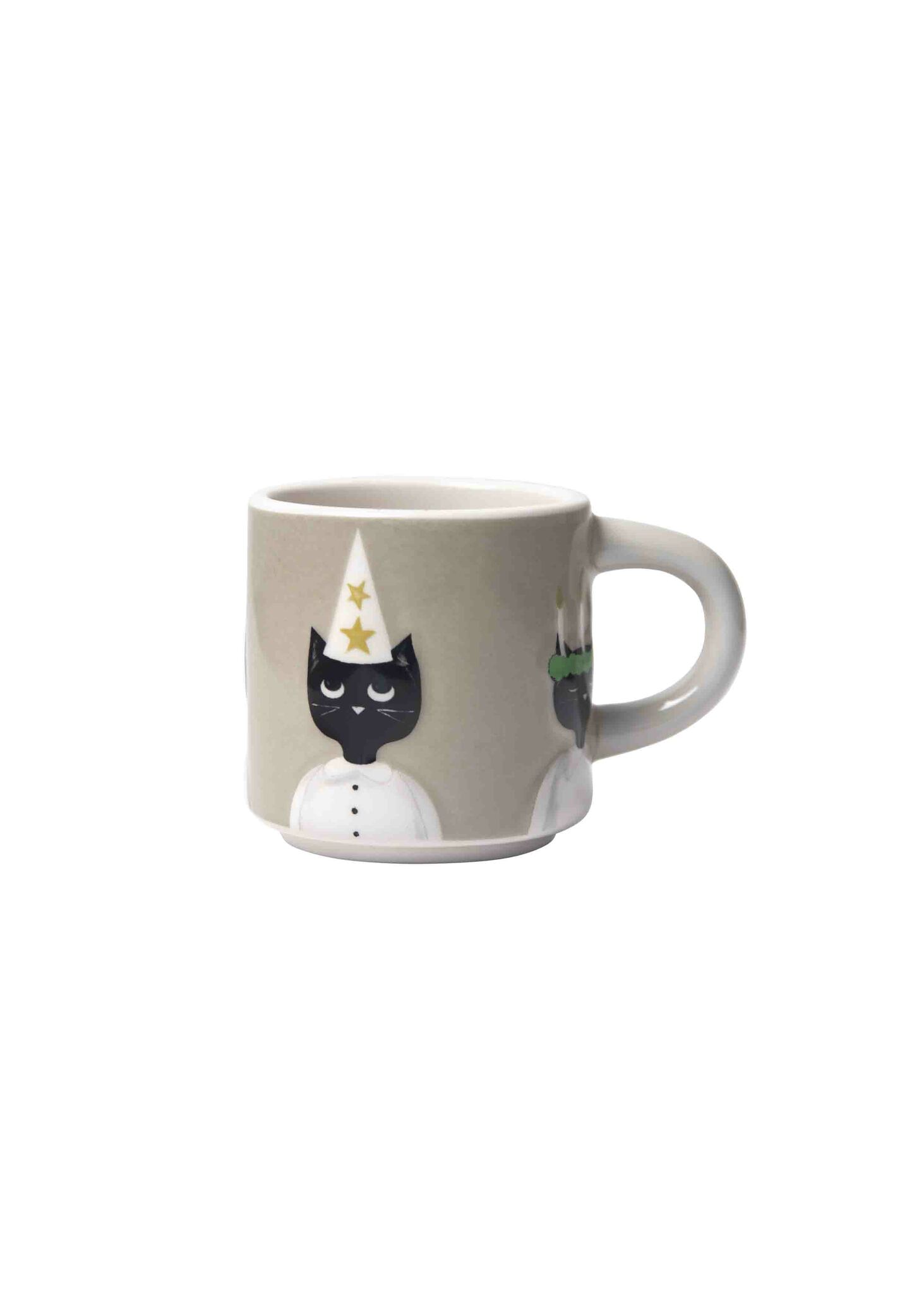 Luciafikat når nya höjder med glöggmuggar med riktiga lussekatter på. Handmålad keramik. Tål diskmaskin. Höjd: 6.5 cm