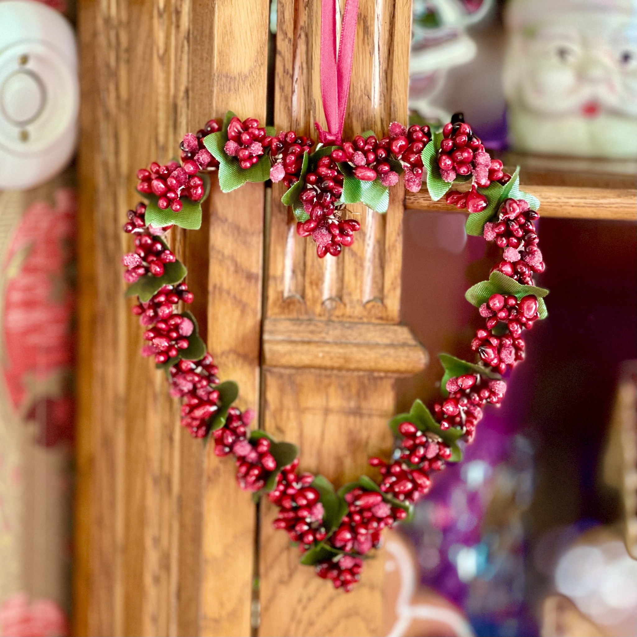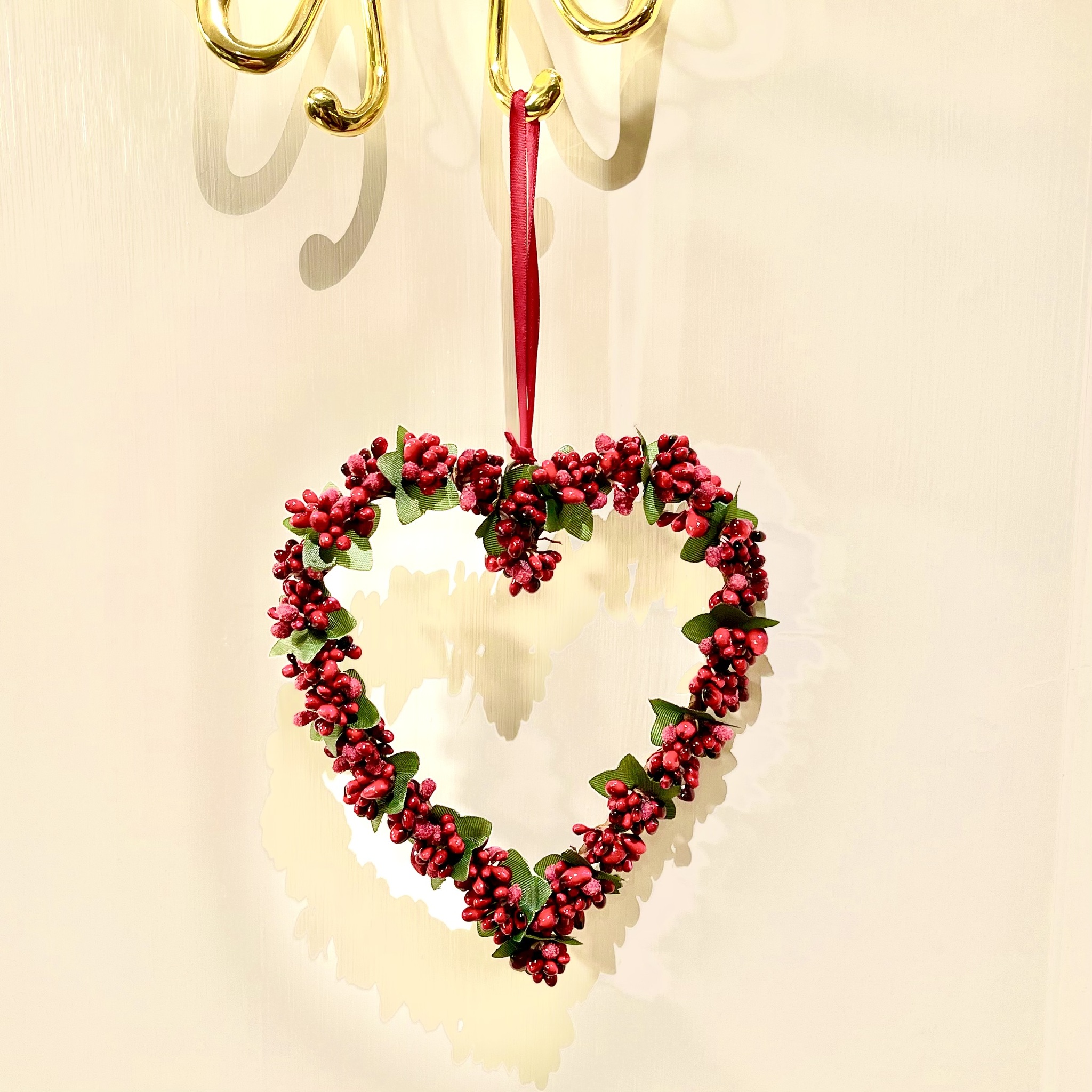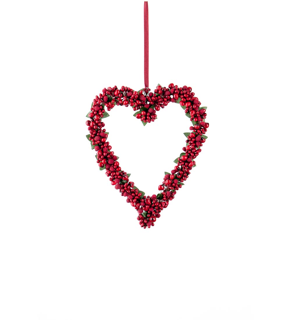 Bedårande hjärta med konstgjorda bär och pärlor. Häng det i granen, i fönstret eller på skåpdörren. Passar lika bra överallt. Diameter 15 cm.