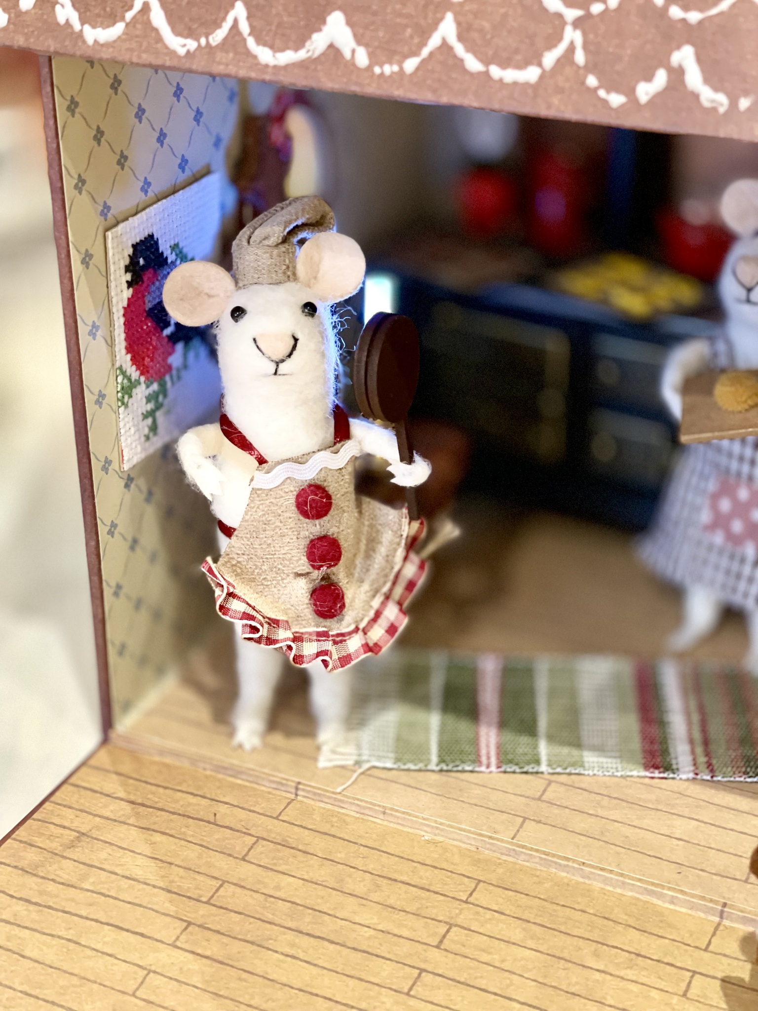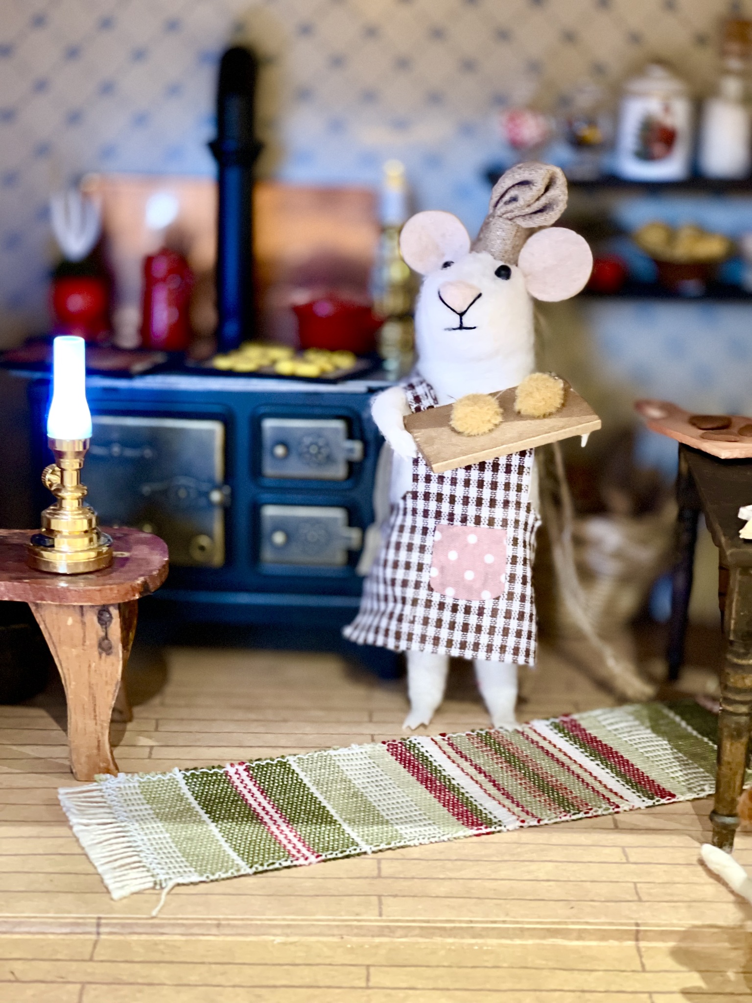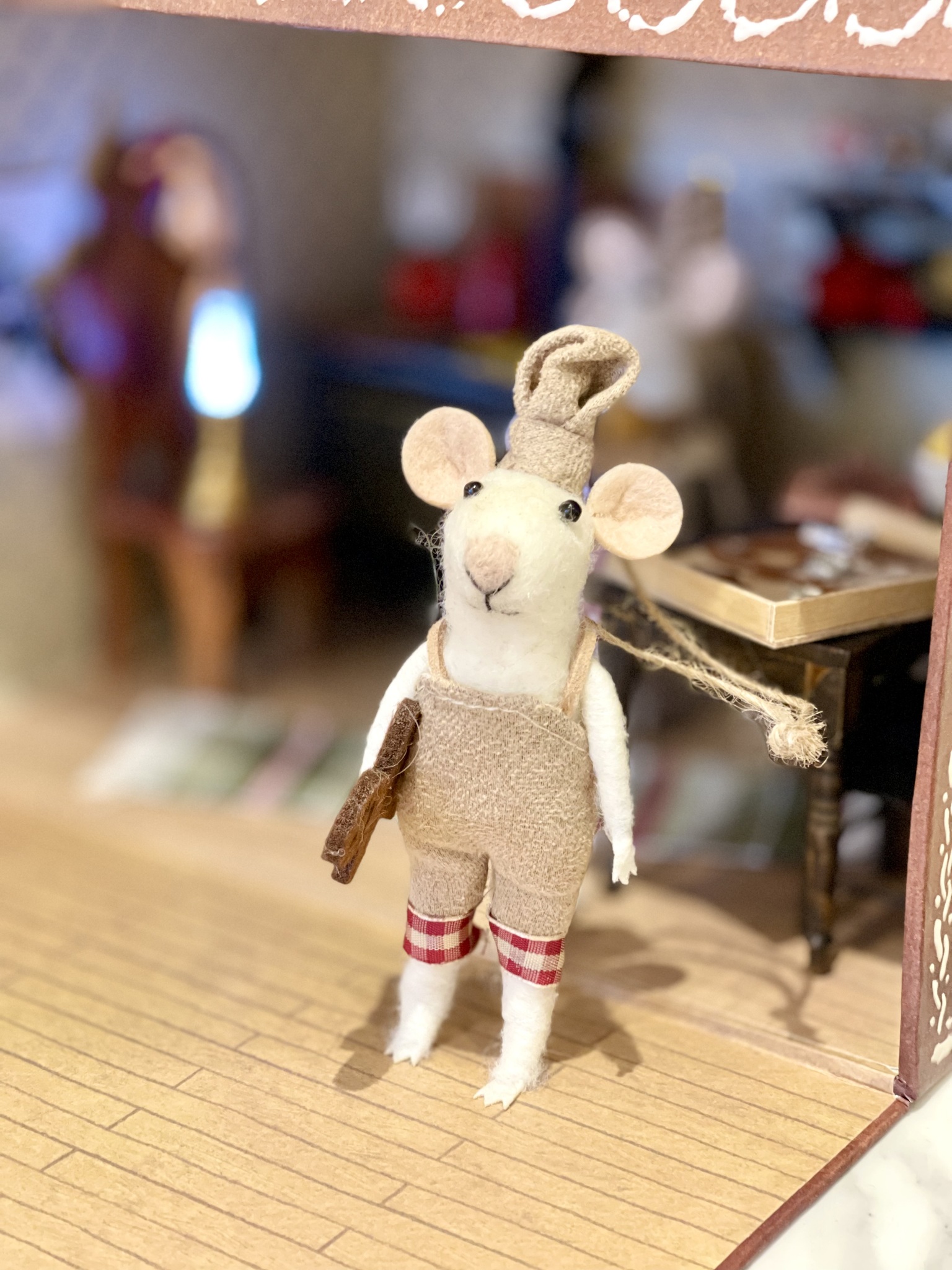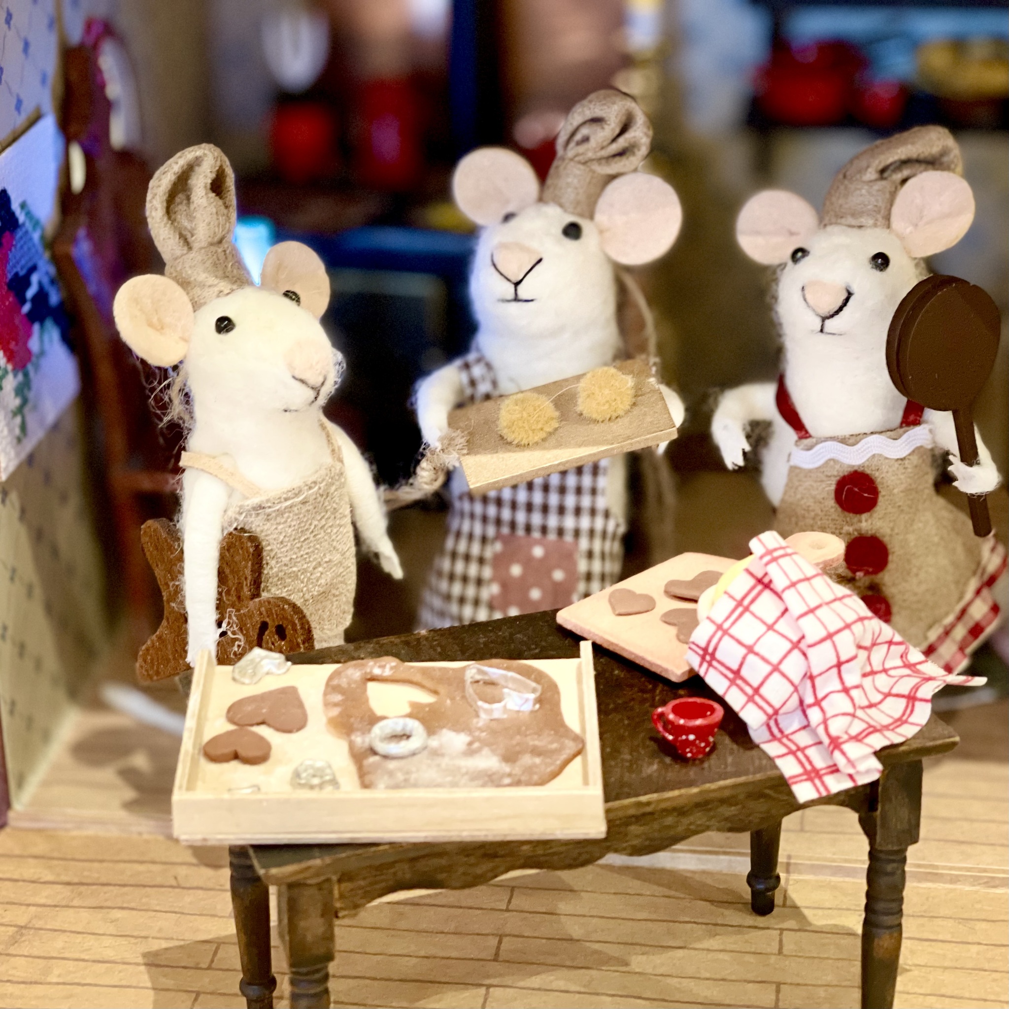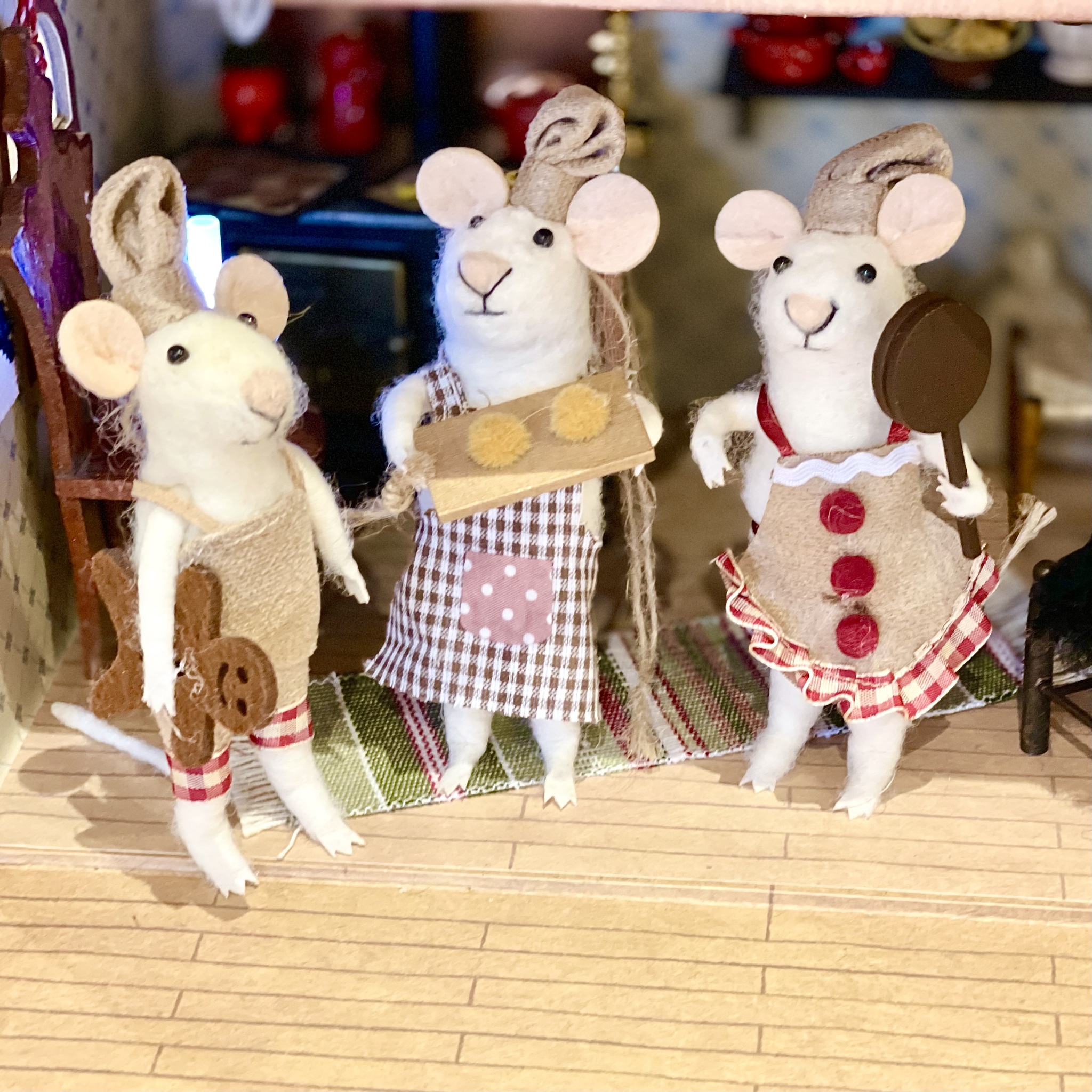 Tre sockerbagare här bor i staden och kanske i din gran? Tre ljuvliga och flitiga små tovade bagarmöss som faktiskt passar att ha framme året runt. Höjd 13 cm, bredd 5 cm. Priset är för tre stycken.