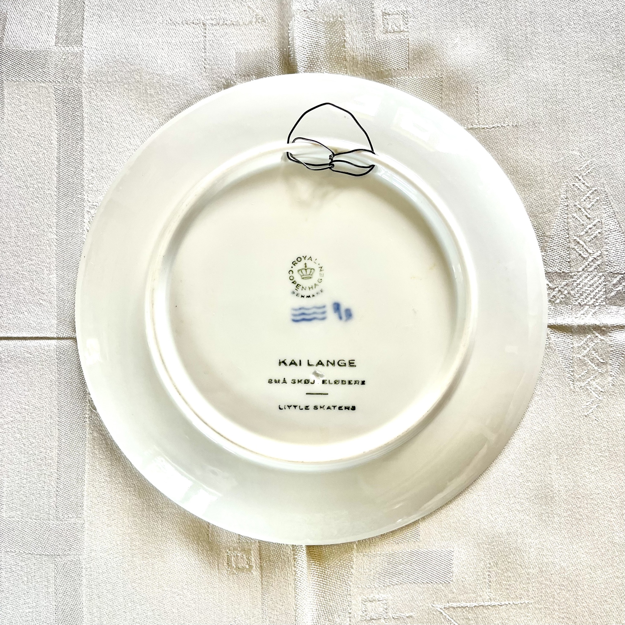 Jultallrik 1965 från Royal Copenhagen med motivet ?Små skøjteløpere/Little skators?. Häng upp på väggen eller använd som assiett. Diameter 18 cm. Obetydligt bruksslitage