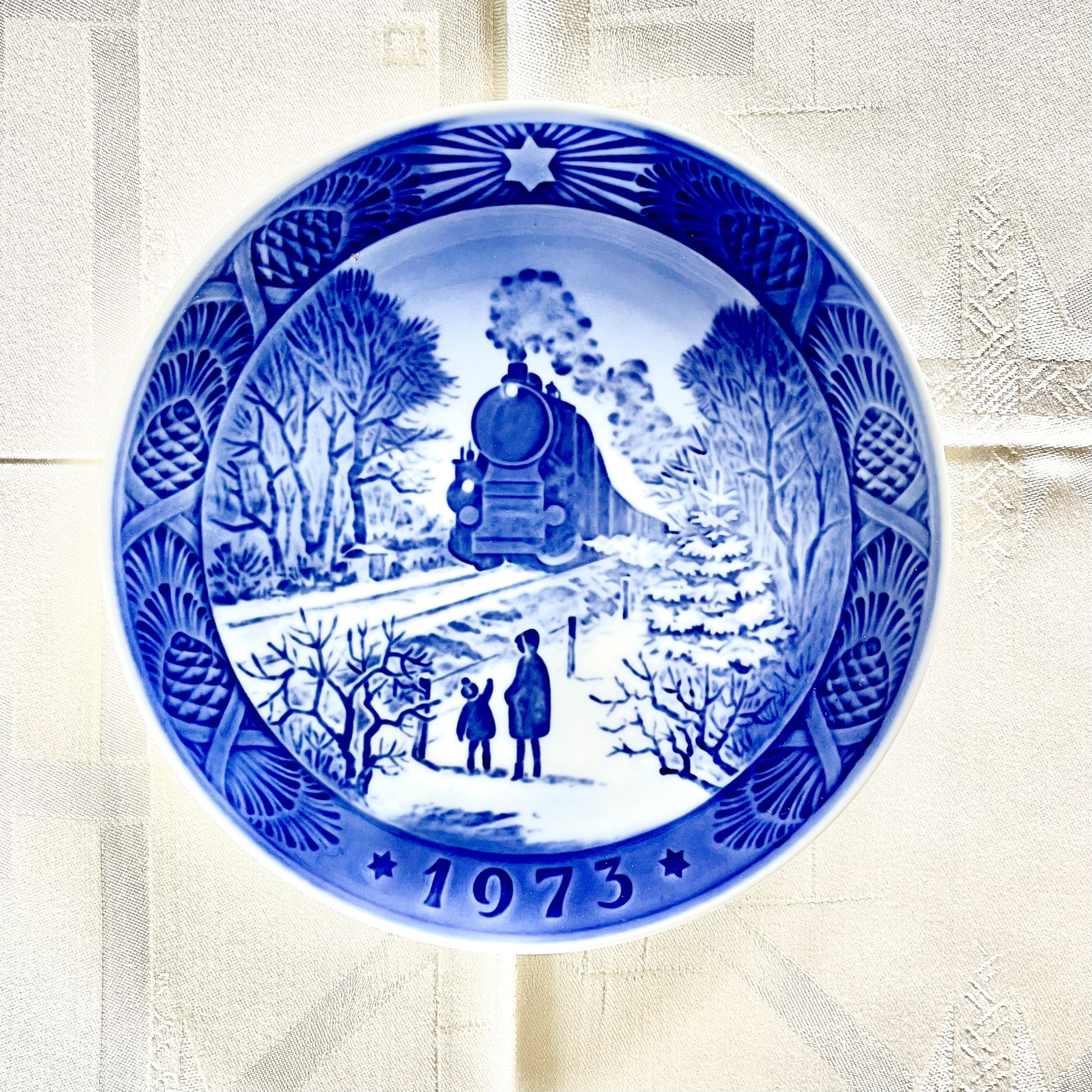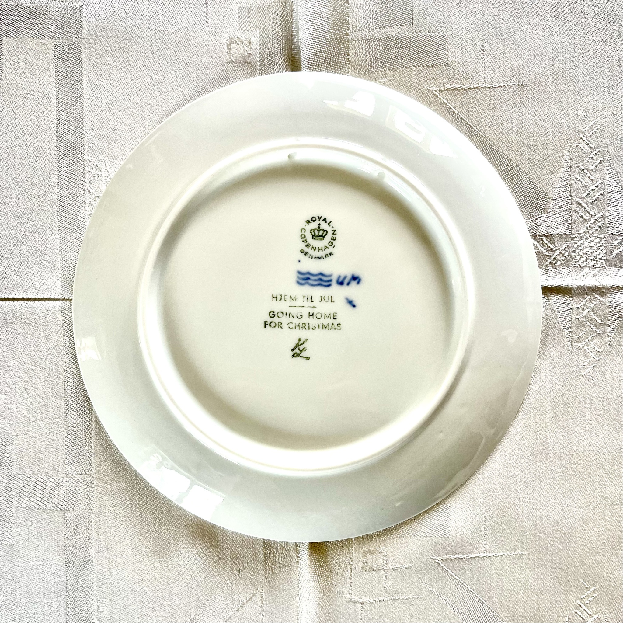 Jultallrik 1973 från Royal Copenhagen med motivet ?Hjem til jul/Going home for Christmas?. En klassiker bland jultallrikar. Häng upp på väggen eller använd som assiett. Diameter 18 cm. Obetydligt bruksslitage
