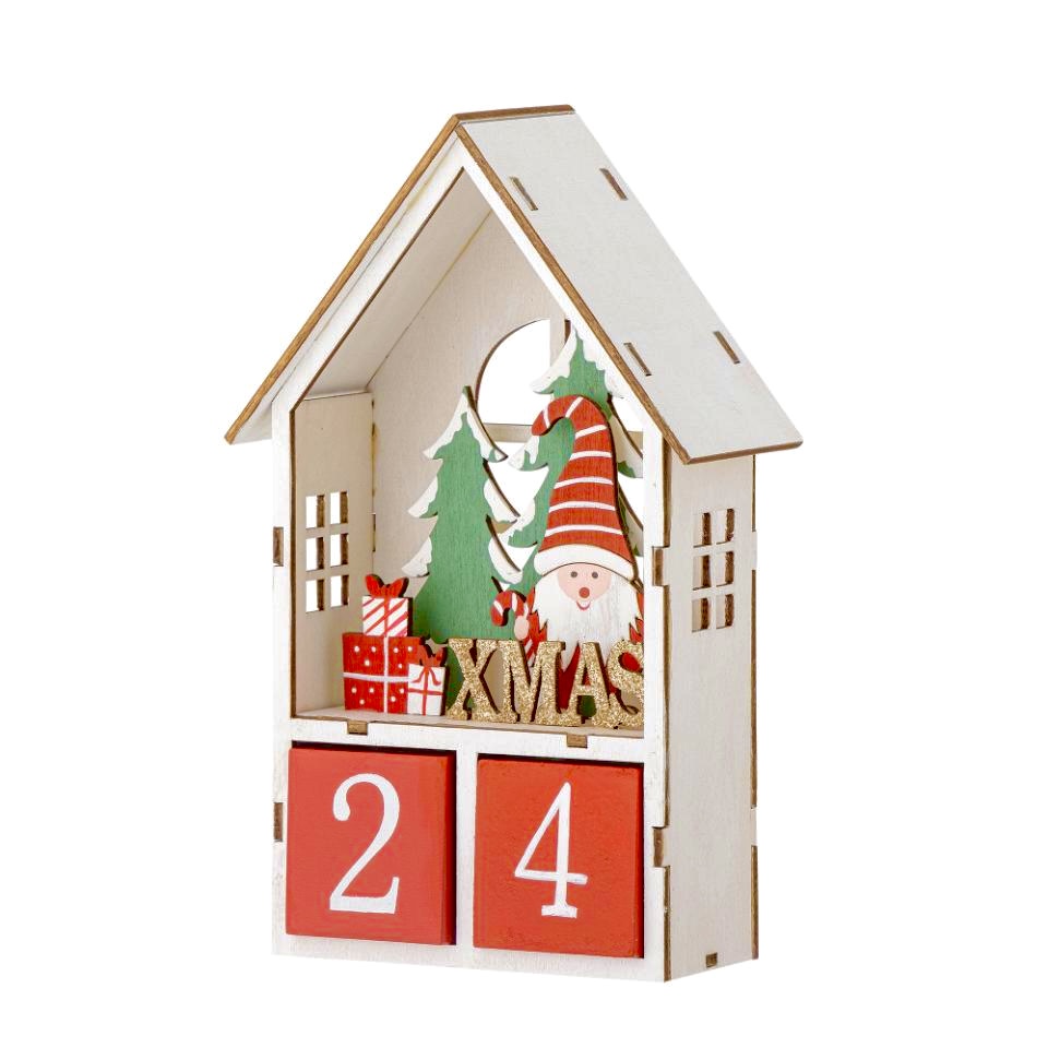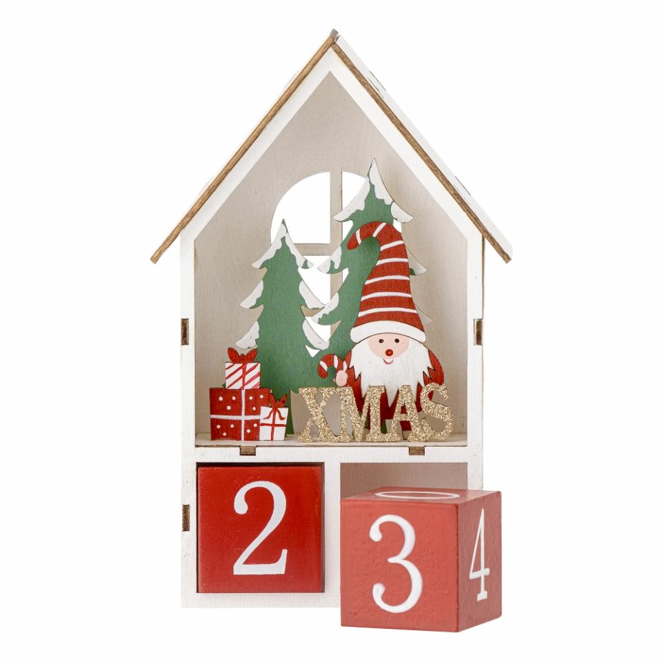 Räkna ner inför julafton med stil med hjälp av denna bedårande kalender av plywood som kan användas år efter år. Höjd 19 cm, längd 12 cm, bredd 5 cm.