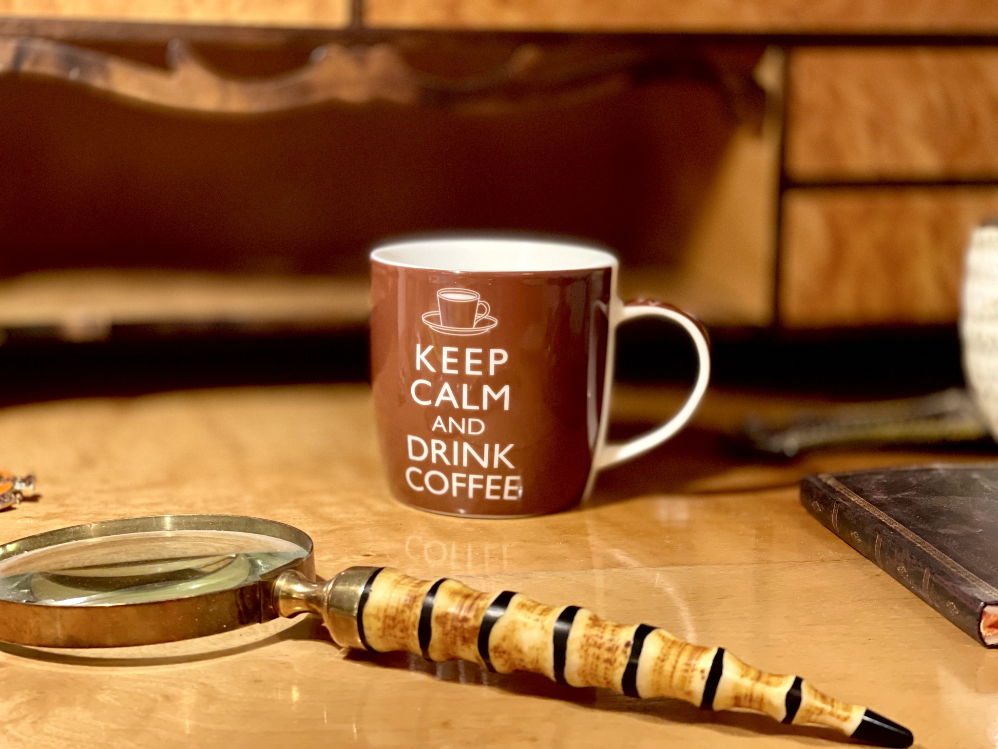 Kopp av porslin med texten ?Keep calm and drink coffee?. Tål diskmaskin och micro. Höjd 9 cm, rymmer 350 ml.