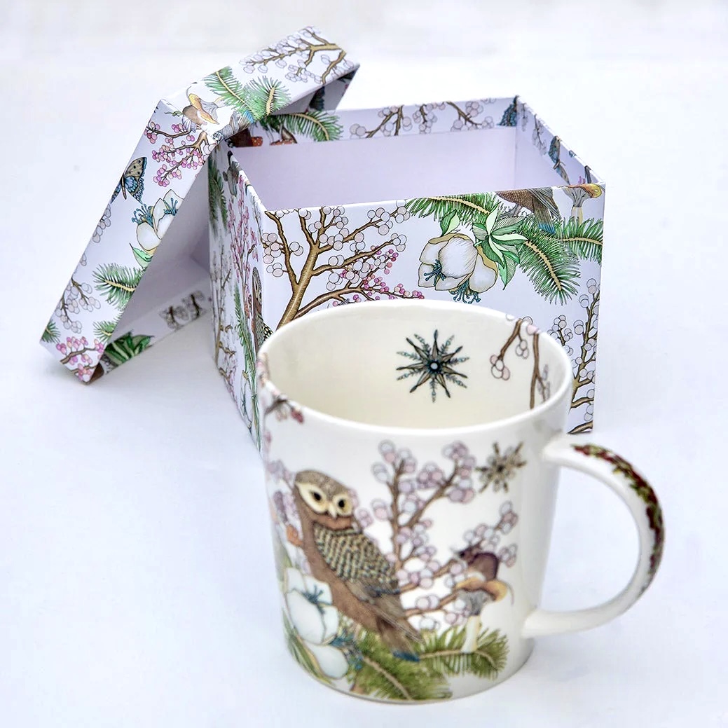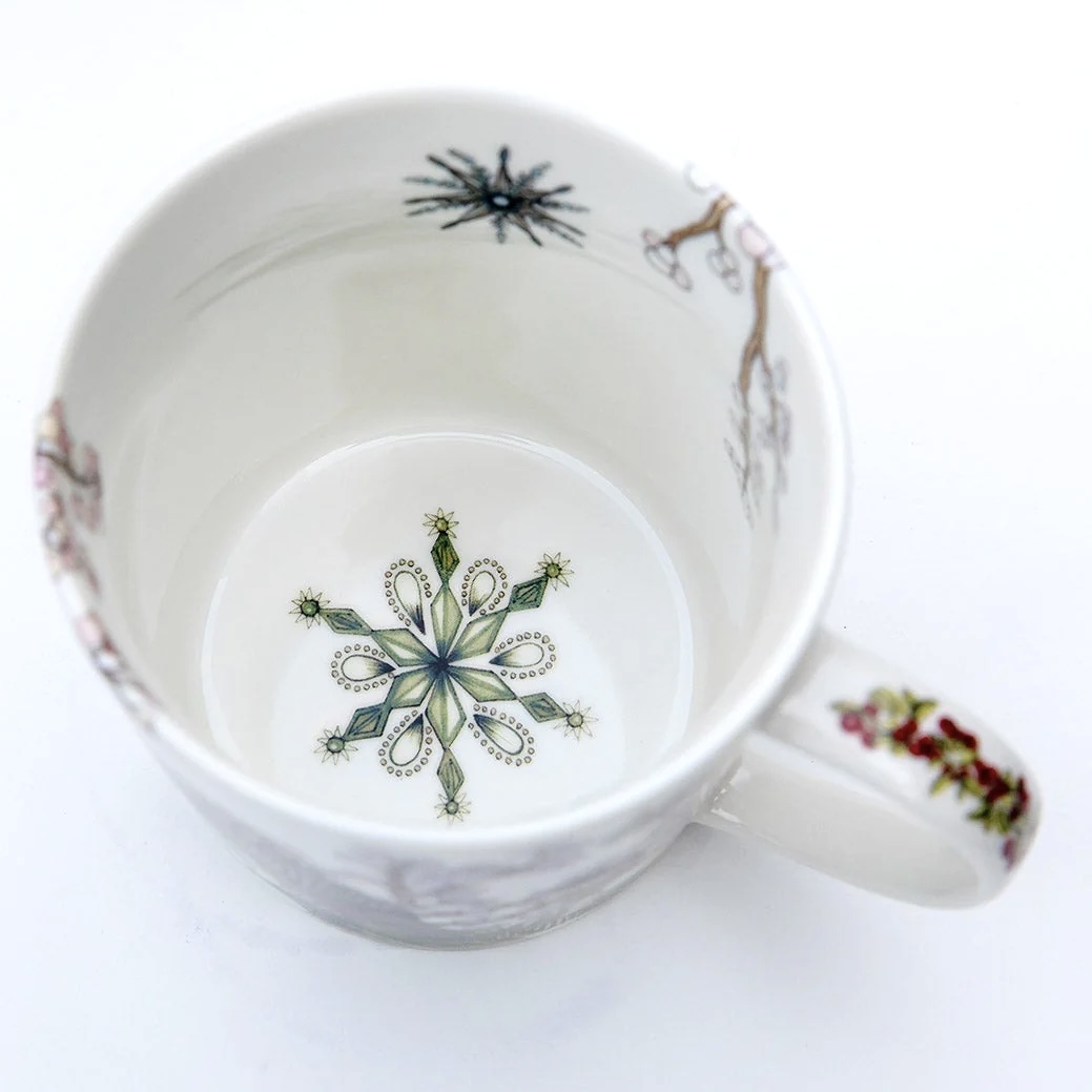 Mugg av porslin med vintertema, designad av den svenska konstnären Nadja Wedin. Levereras i en fin presentförpackning. Tål diskmaskin och mikro. Rymmer 35 cl.