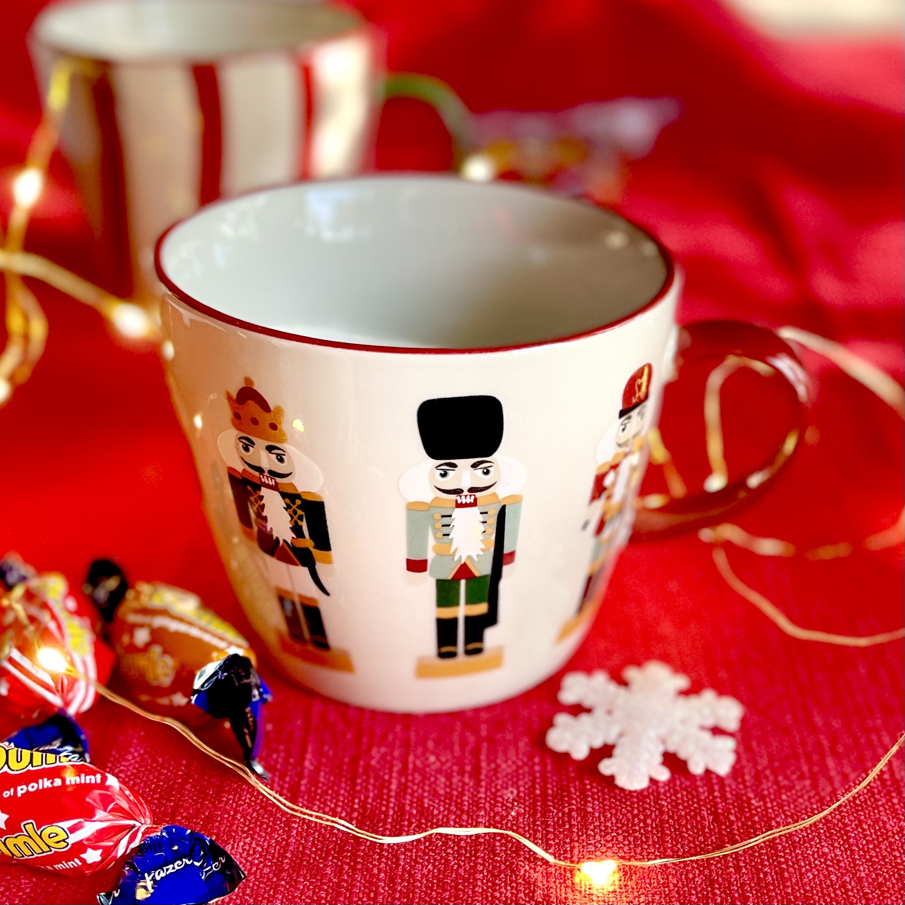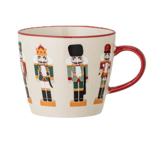Rustik och festlig julmugg som pryds av ett helt gäng med högtidliga nötknäpparsoldater. Stengods. Matcha gärna med assiett i samma serie. rymmer 300 ml. Handdisk, ej micro. Diameter 9 cm, höjd 8 cm.