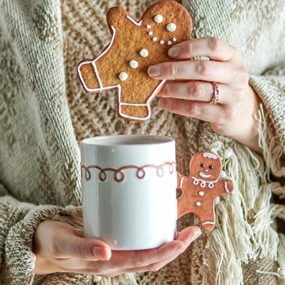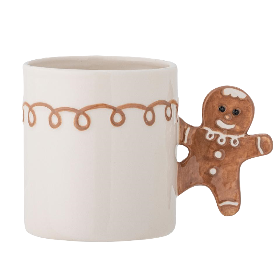 Så här kan julporslin också se ut! En handmålad julmugg av stengods som får vem som helst på gott humör! Tål diskmaskin och micro. Höjd 9,5 cm