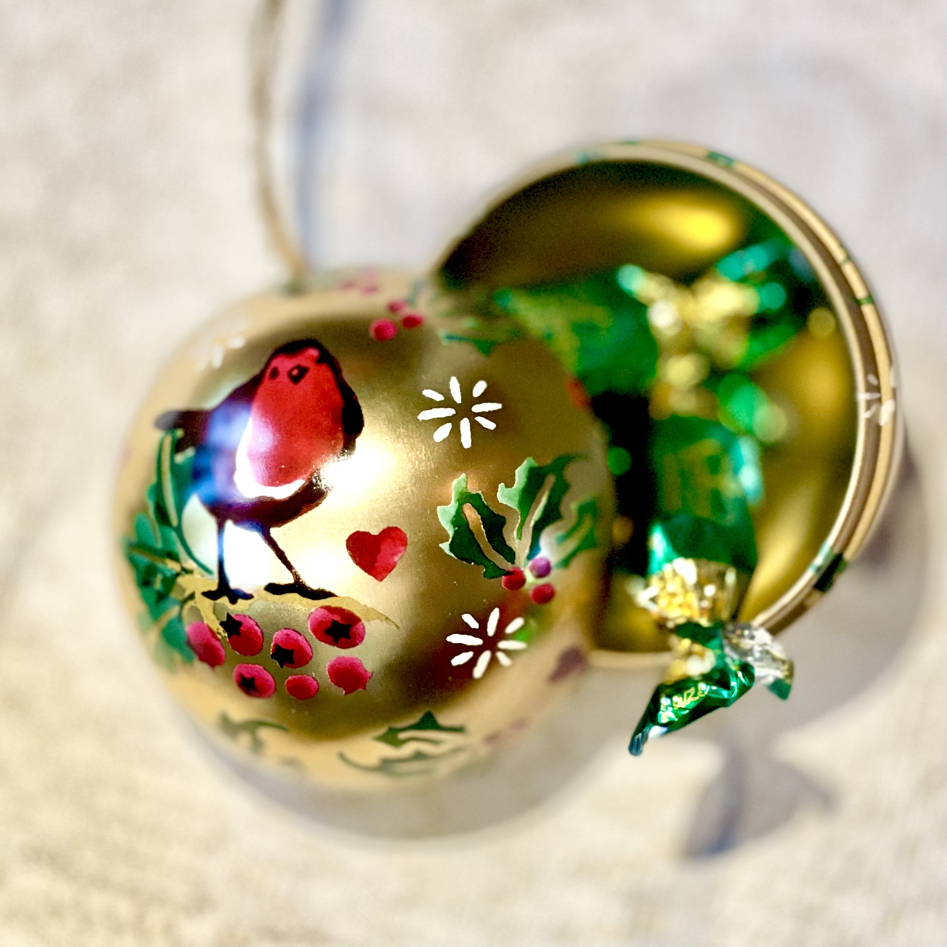 Delbar julgranskula av metall från Emma Bridgewater, perfekt att gömma godis i inför julgransplundringen eller varför inte en hemlig julklapp? Diameter 7 cm. OBS! Godis i går ej.