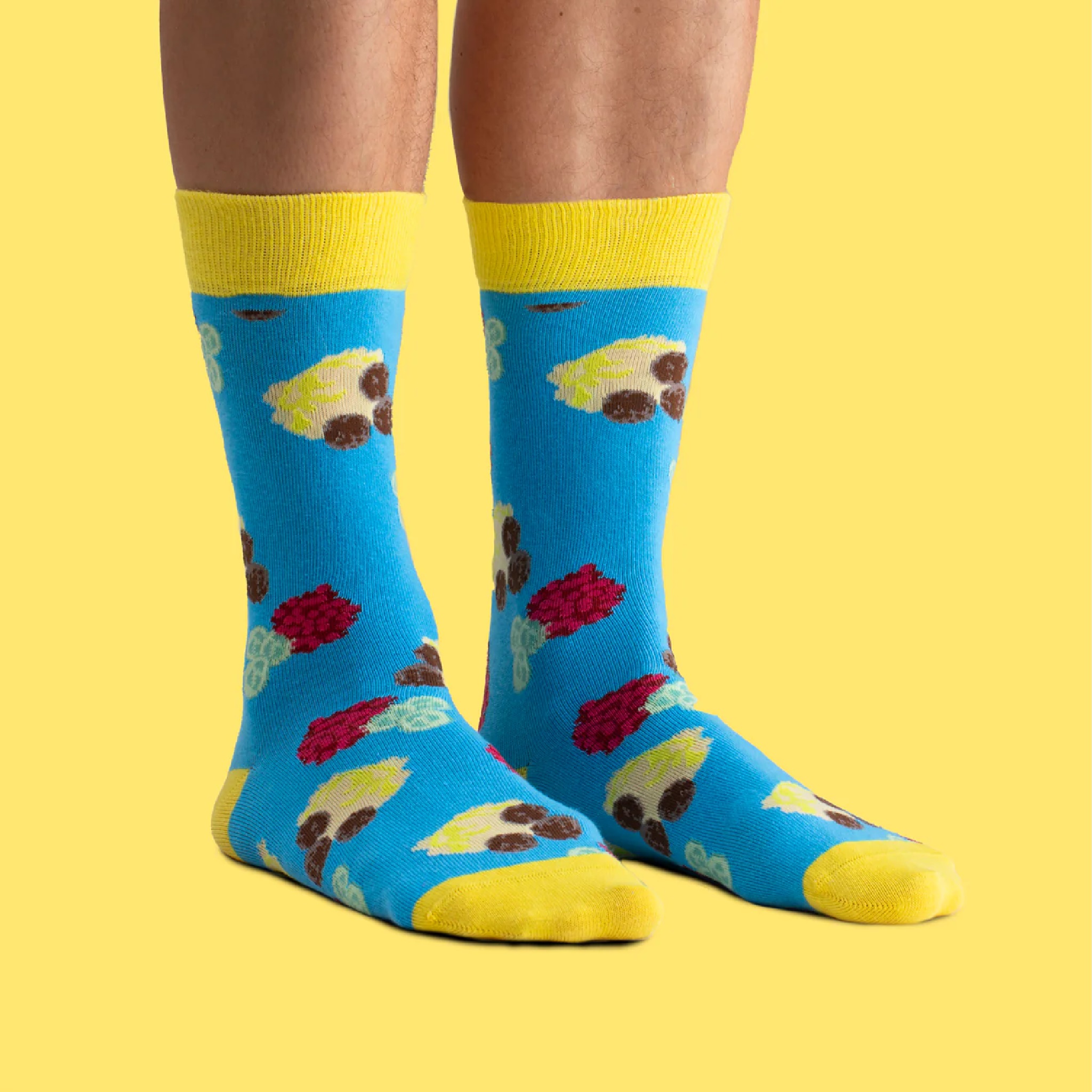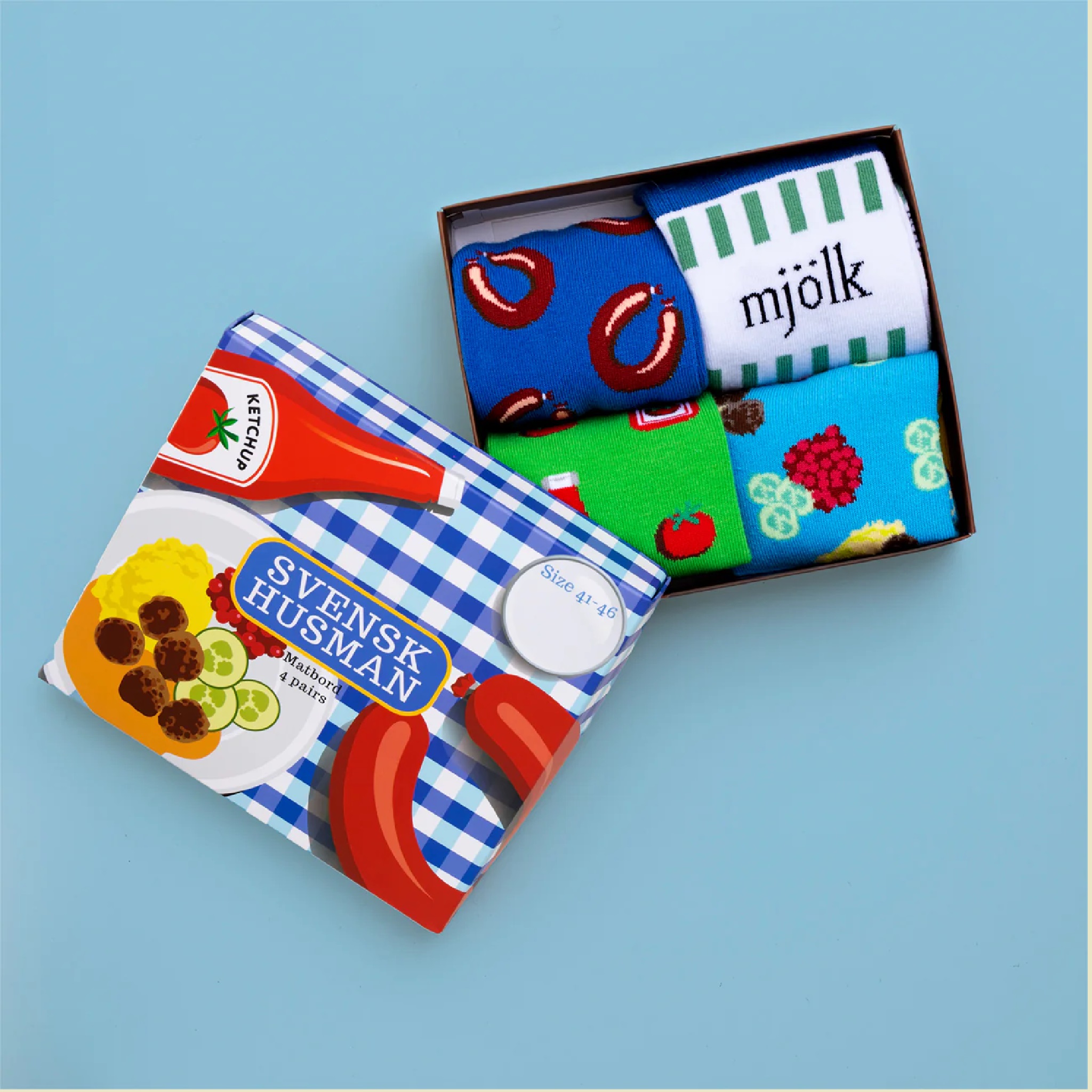 Denna eleganta presentförpackning innehåller ett set om fyra unika strumpor i stl 41-46 inspirerade av det dukade bordets charm ? perfekt för matälskaren med stil. Mjuka, bekväma och fulla av personli
